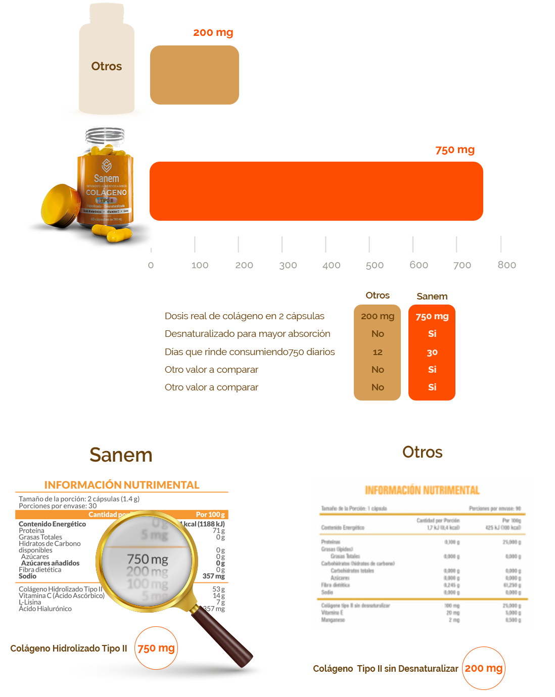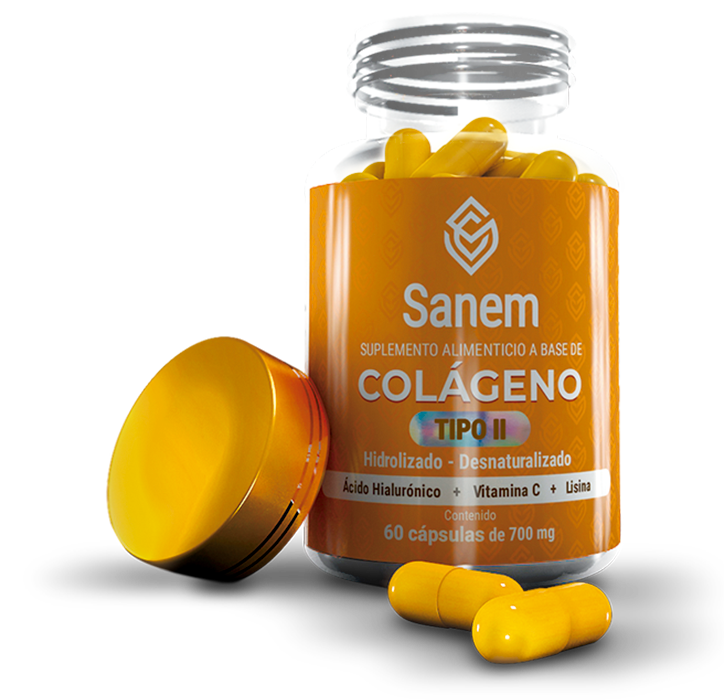 Sanem, el primer suplemento alimenticio creado a partir de Colágeno Hidrolizado Tipo II desnaturalizado con Glucosamina, Condroitina, Ácido Hialurónico, Lisina y Vitamina C, que mejoran tu salud articular y el bienestar general del cuerpo.